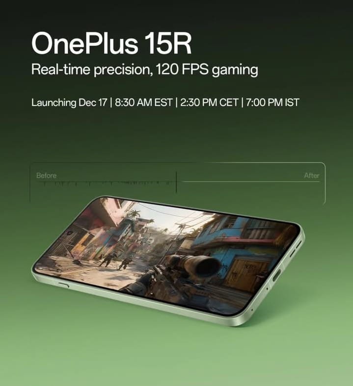 OnePlus 15R is an upcoming performance-focused smartphone scheduled for launch on December 17, 2025, in India. Its specifications have been officially teased and leaked, highlighting a powerful processor, a large battery, and a high-refresh-rate display.